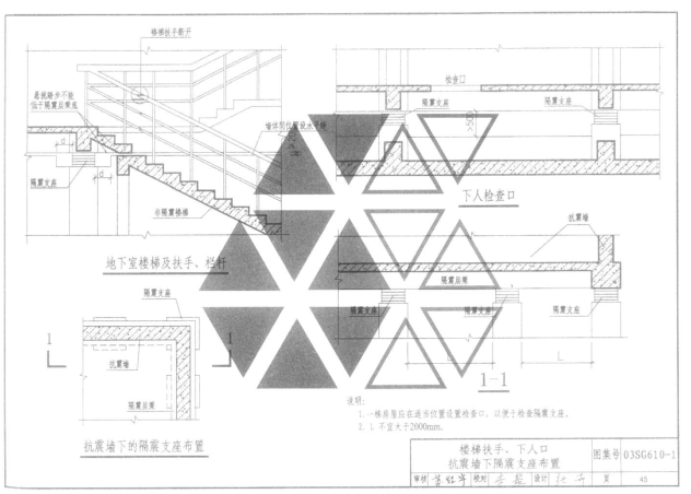 楼梯扶手、下人口、抗震墙下隔震支座布置 45
