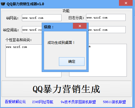 QQ暴力营销生成工具(QQ营销软件)是一个用于批量修改QQ号码资料的软件。当你有批量QQ小号用来进行营销而又想统一资料,有需要的赶紧来东坡下载吧。