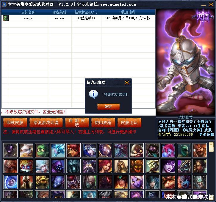 木木英雄联盟皮肤管理器不会封号,100%稳定、完美使用。(推出了一个多月,无任何被封号案例)
