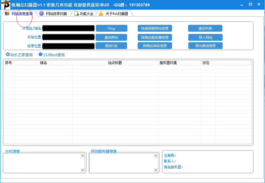 1、列举同ip域名,快速查询网站信息;
