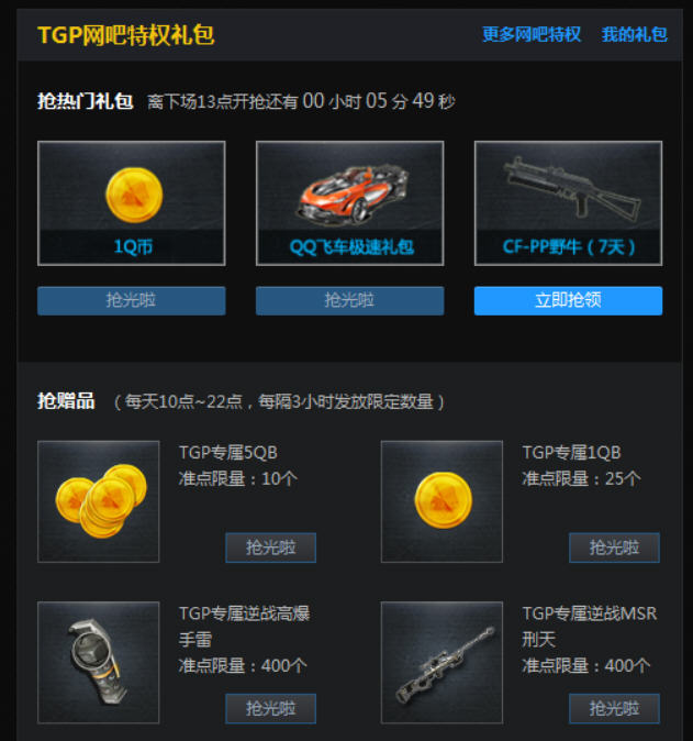 开了网吧奖励后,用腾讯TGP进游戏,没有网吧金牌效果,用此软件可以解决!