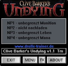 《不死之灵》四项修改器,更新支持1.1版本游戏,dRolle制作,在游戏中可以获得无限子弹,无限生命等实用功能,使用时先运行游戏,再启动修改器。