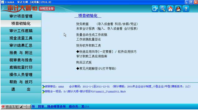 审计大师破解版是款专业的财务审计软件。审计大师破解版通过导入财务数据,软件自动分析,自动进行凭证抽查,有需要的赶紧来东坡下载吧。