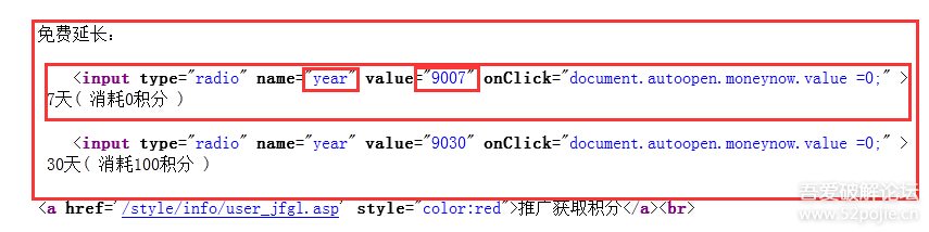找到你要选择的续期单选框,看看和程序的107行对比一下,又发现了什么?
