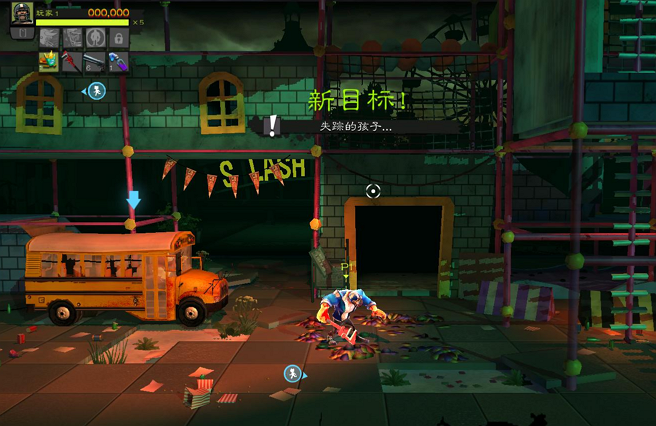 游戏确实是以动作为主,也融入了许多解谜的部分。各种寻找油桶填充燃料就不用说了,利用糖果机诱骗问题少女回校车也只是考玩家的智商下限。连FC游戏松鼠大作战的“接Boss丢下的石头砸Boss”这么怀旧的设定都有,游戏策划不仅是个丧尸迷,还是个非常有童心的丧尸迷。老实说,笔者不喜欢这种对付Boss的方式,这样会让好好的一款动作游戏变得像马里奥。