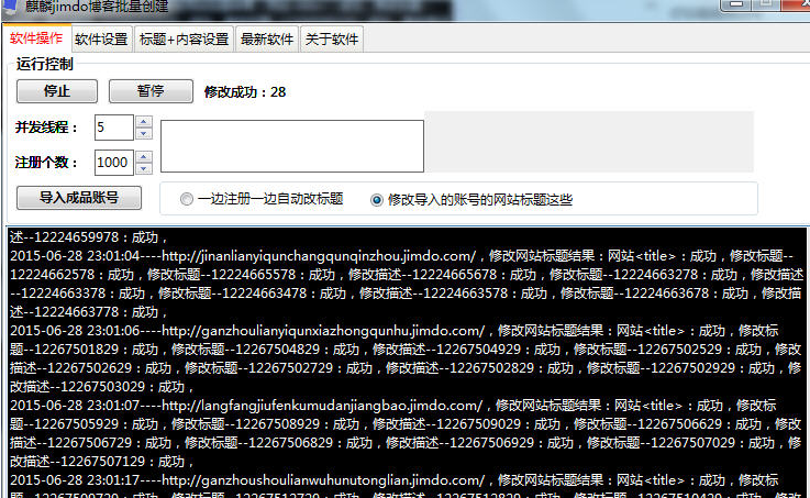 麒麟批量开通jimdo博客工具是一款批量注册、修改国外二级网站的软件,域名是jimdo.com。谷歌权重8,百度权重3 ,可以实现批量注册、修改网站标题、描述内容等。