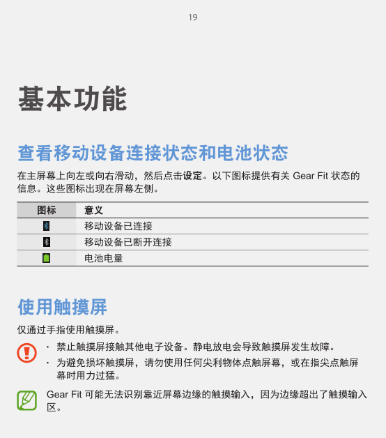 三星Gear Fit R350说明书目录
