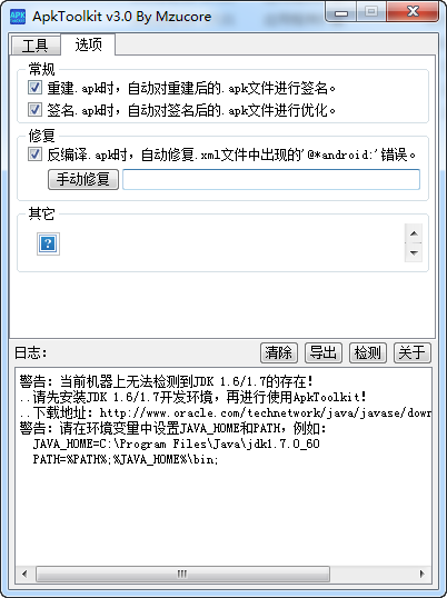 2、使用"反编译.apk"功能时,路径中不能出现任何中文字符或全角字符!