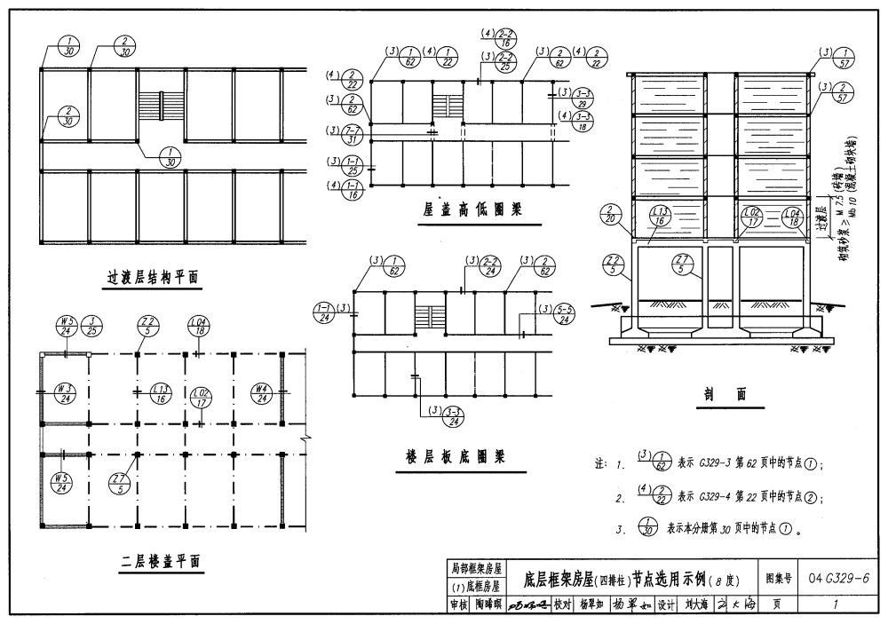 底层框架房屋(四排柱)节点选用示例(8度)1