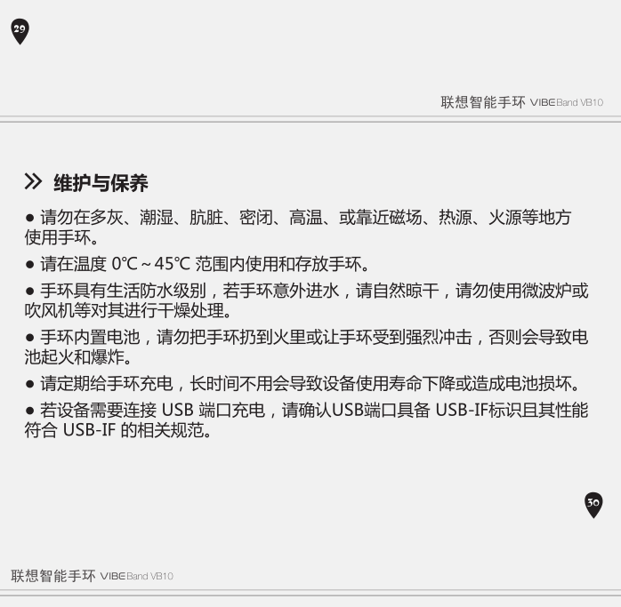 该联想智能手环VB10说明书内容包括对联想智能手环VB10的基本介绍、升级手环软件方法以及维护与保养方法等,内容完整详细,如果在使用联想智能手环VB10的过程中你有什么问题需要解决,不妨来翻翻这份pdf格式电子版Lenovo VB10用户操作手册吧!相信它会对你有所帮助的!有需要的朋友点击本文相应的下载地址即可查阅该说明书的全部内容哦!
