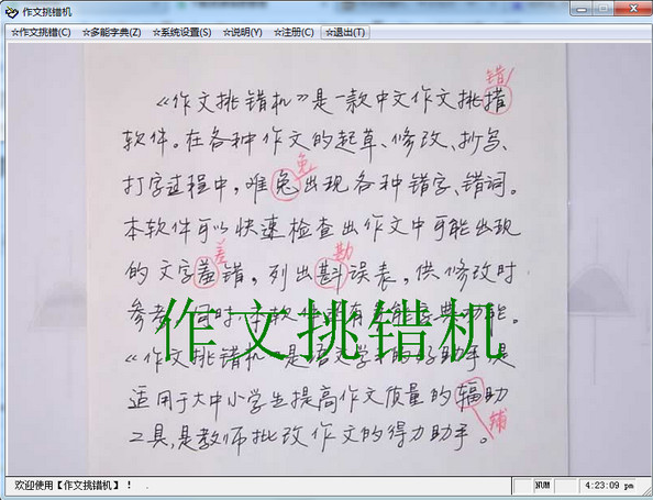 同时,作文挑错机是文科学习的好助手、是适用于大中小学生提高作文质量的辅助工具、是教师批改作文的得力助手。