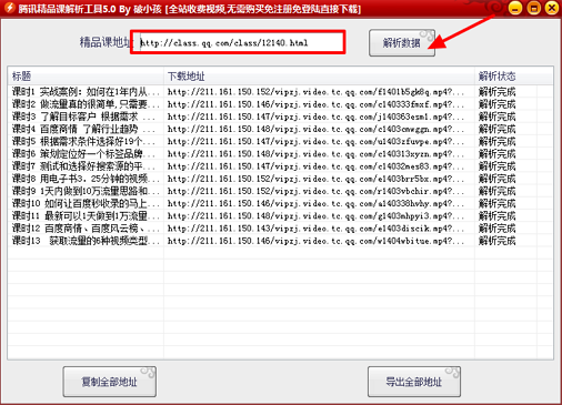 腾讯精品课解析工具操作步骤:
