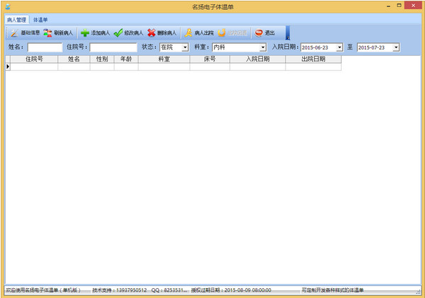 名扬电子体温单(体温单打印软件)是一款支持病人体温单数据管理,体温单绘制,打印的绿色免费的软件。将护士从绘制体温单的繁重工作中解放出来,提高护士绘制体温单的工作效率和准确率。有了创想电子体温单,绘制体温单变简单!