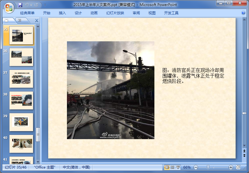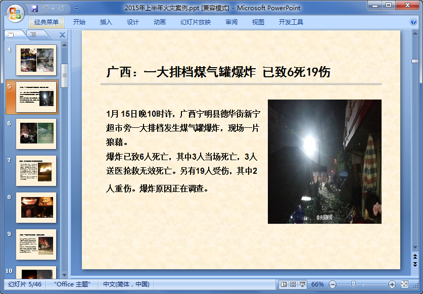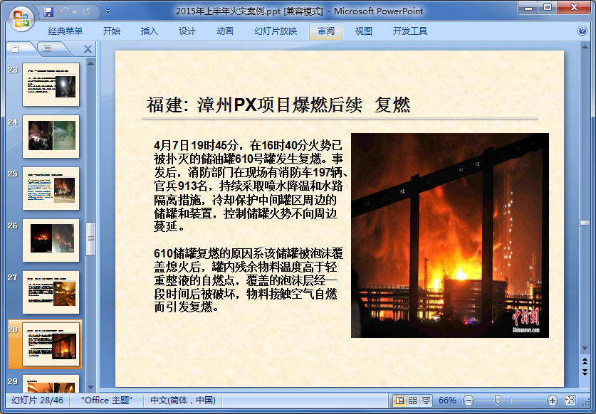 火灾每年都会发生,对于火灾我们要做的就是防患于未然,这里东坡小编带来2015年上半年火灾案例ppt,这份ppt详细完整,共计46页,收集了各个省份的重大火灾,适合制作火灾案例分析会ppt,需要的朋友点击下面的地址即可免费进行下载。