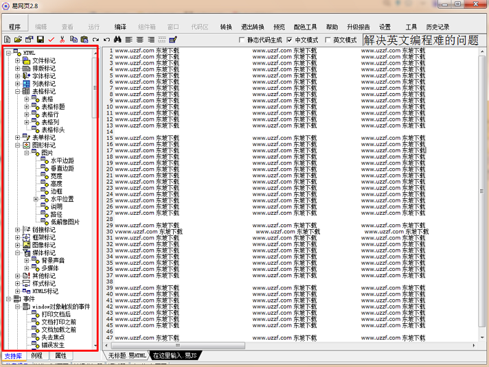 易网页是以中文、中英混合、英文等开发网页的可视化环境。 目标计划,大量的引用组件,减少用户的代码量,不断的智能化,有需要的赶紧来东坡下载吧。