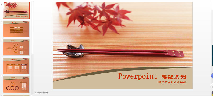 这里给大家带来的是关于餐饮行业商务介绍的ppt模板。模板以一双筷子为背景主题元素,很好的突出了饮食这一主题。模板又包含有多种样式的图表,适合在商务介绍场合下使用。