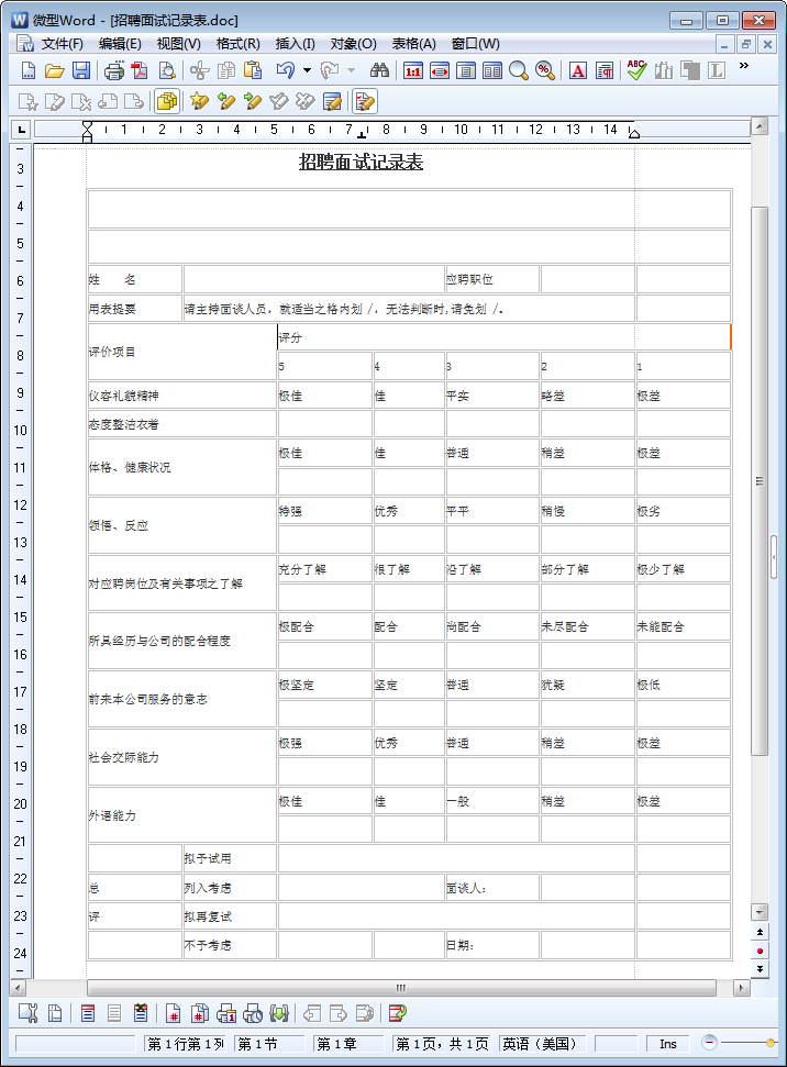 该招聘面试记录表是从事人事的朋友们经常会用到的表格之一(对于个人而言,其实这也是一份比较重要的自我评价表),那么一份内容完整详细的的招聘面试记录表都包含哪些内容呢?本节内容东坡小编为大家整理带来的是一份word免费版招聘面试表格——招聘面试记录表,以下有关于该表格模板的图样,需要下载使用的朋友点击本文相应的下载地址进行下载即可!