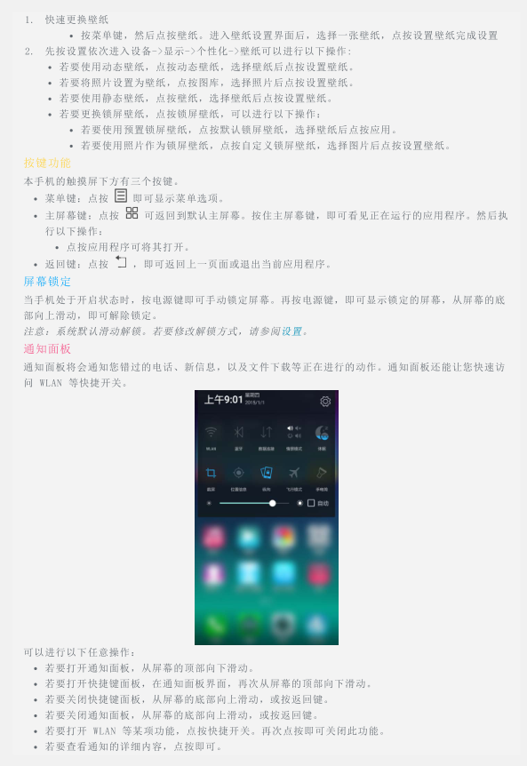若要打开快捷键面板,在通知面板界面,再次从屏幕的顶部向下滑动。