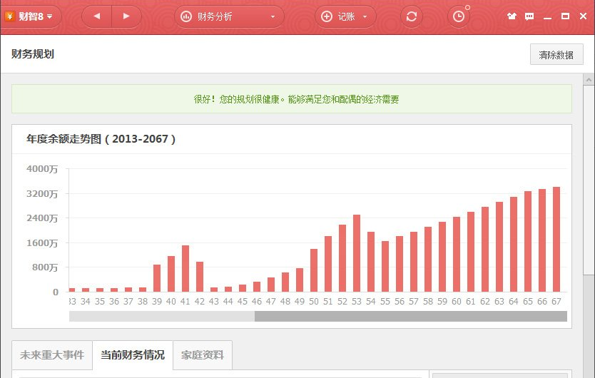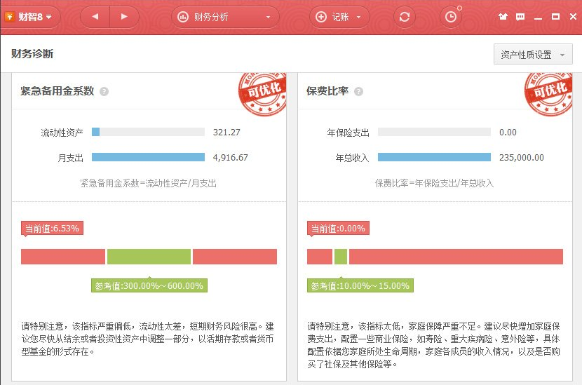 2、家庭财务投资是资产负债的各种组合和配置,财务诊断能够在大量的数据中进行分析和判断,帮助用户了解家庭财务健康状况,发现可能存在的健康隐患,为投资决策提供重要的参考指标。