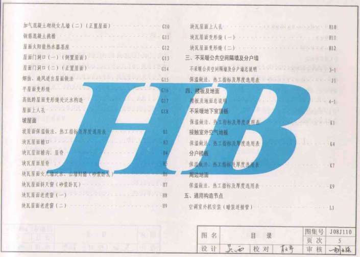 居住建筑节能构造图集抓哟包括以下内容:一、外墙 二、屋面 三、不采暖公共空间隔墙及分户墙 四、楼板及地面 五、通用构造节点。