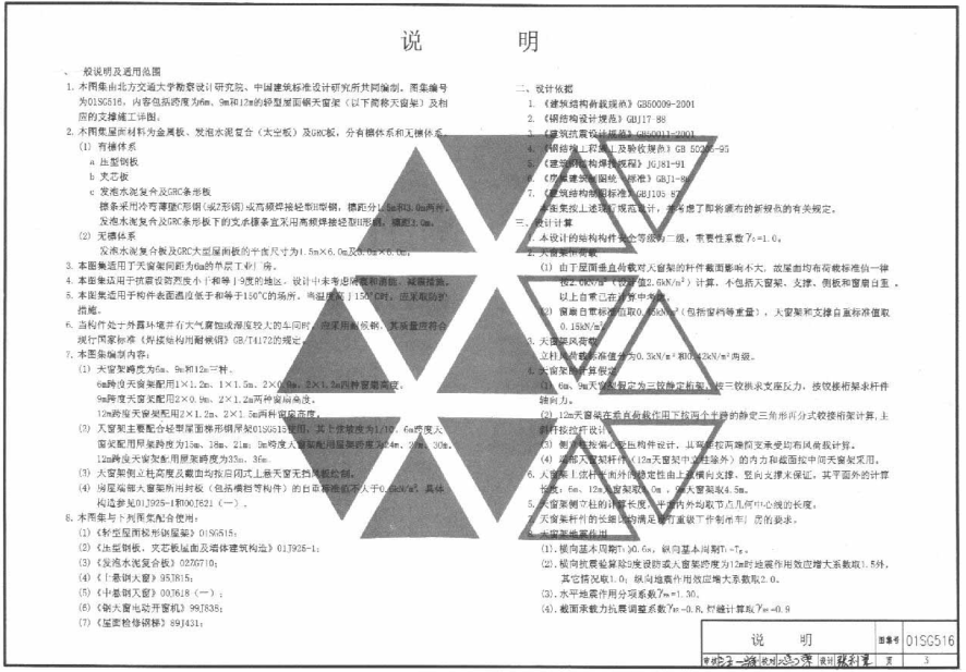 01SG516轻型屋面钢天窗架图集(以下简称为01sg516图集)是一份内容包括跨度为6m、9m和12m的轻型屋面钢天窗架及相应的支撑施工详图。本节内容东坡小编为大家整理带来的是一份pdf格式清晰影印版由49页组成的01sg516图集,如果你需要这份图集作为参考资料的话点击本文相应的下载地址进行下载即可!