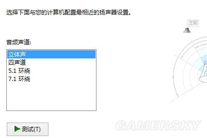 最后选择立体声或者四横道,5.1环绕也可以,但是不要选择7.1环绕。这样就可以解决游戏中没有声音的问题了