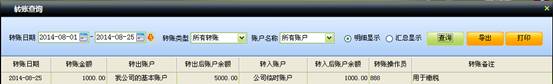 7.内部转账、转账查询:本单位内各个账户间进行的转账登记,可以通过转账查询可以查到该笔转账的详情。