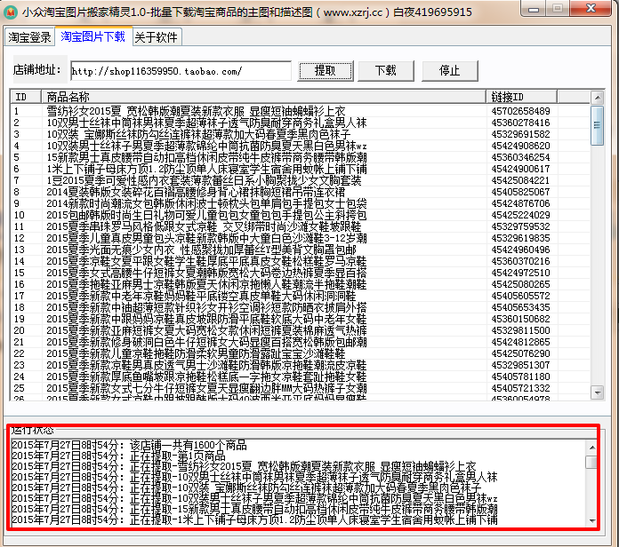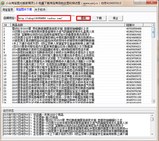 下载软件,打开软件输入你要搬家的淘宝网址,点击提取等待结束,