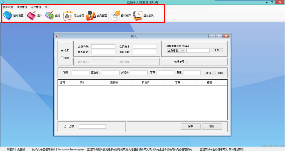 支持会员管理,信息模糊超找等特点。蓝恒个人美发管理系统人性化的操作程序,使您无需了解太多的财务知识,即可流畅的使用具有操作简便,功能完善等特点且安装简便使您不必安装太多的支持库相关。