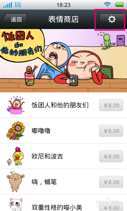 点击“表情商店”以后,进入到表情商店窗口,点击右上角的按钮进入表情管理窗口