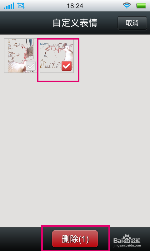 点击“编辑”按钮以后,只要选中要删除的自定义表情,然后点击“删除”按钮即可删除