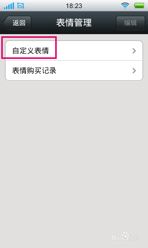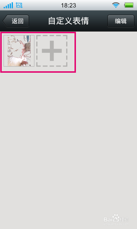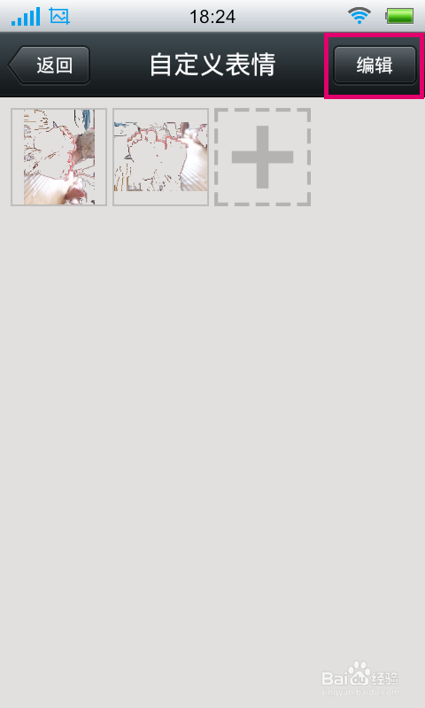 点击“使用”按钮以后,再自定义表情窗口就可以看到添加的自定义表情了。点击右上角的“编辑”按钮可以对添加的自定义表情进行删除操作
