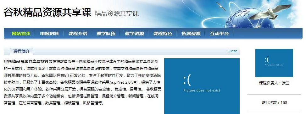谷秋精品资源共享课软件采用Asp.Net 2.0(c#),提供了人性化的UI界面和用户体验。软件采用分层开发,拥有更强的安全性 、稳定性、易用性。