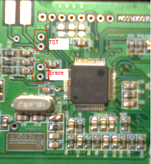 (1)首先找到PCB板子的Erase脚和TST脚,一般J-Link都预留出这两个重要管脚,如下图,分别给出了v8版的这两个管脚的预留位置:
