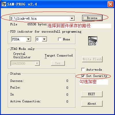 双击桌面上的SAM-PROG v2.4图标 ,运行SAM-PROG v2.4烧录软件,按下图所示进行设置。
