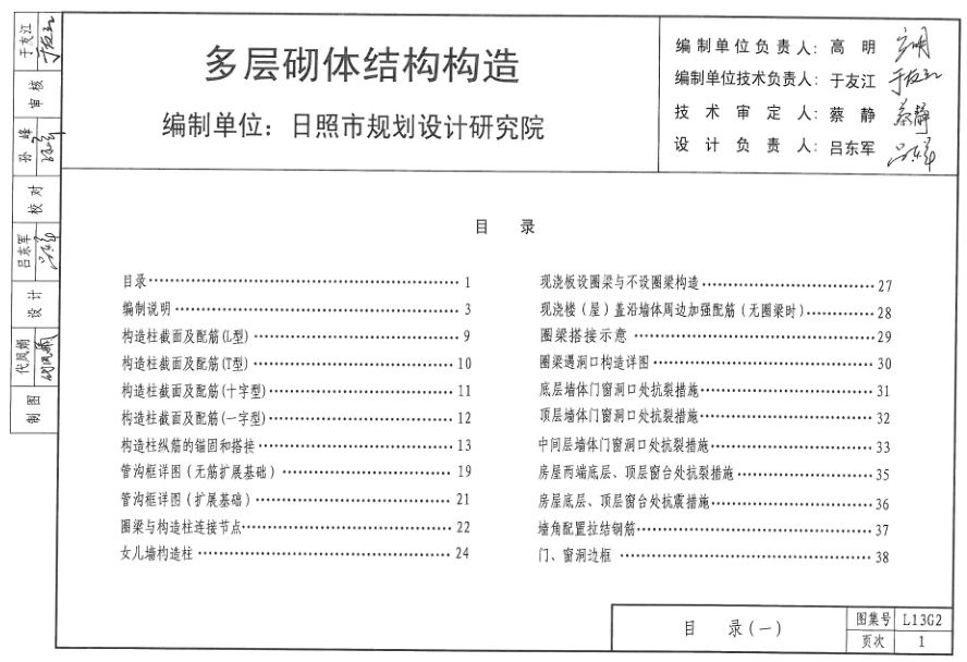 L13G2多层砌体结构构造图集适用于抗震设防烈度6-8度地区以烧结普通砖、混凝土普通砖、蒸压灰砂普通砖、蒸压粉煤灰普通砖等等。