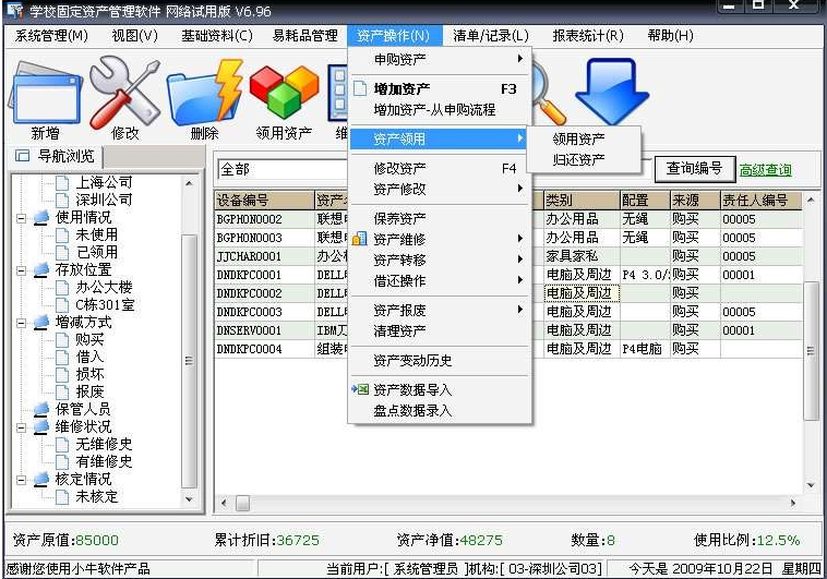 学校固定资产管理软件是一款非常不错的软件。使用了条形码管理学校的固定资产和设备。很实用。有需要的可以来东坡下载使用!