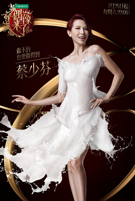 可以看见模特的裙子是奶白色的,而且裙子上的颜色基本上是一个颜色,用吸管取色,新建图层,用喷溅笔刷叠加上去,细节运用橡皮擦以及其他工具调整,营造牛奶与裙子融合的感觉。