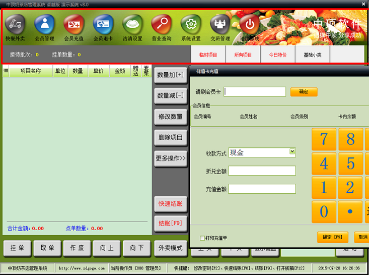 中顶奶茶店管理系统是一款功能强大,可以满足奶茶店的日常经营需求,为店里大大的减少了管理方面的压力,系统操作方便,有需要的赶紧来东坡下载吧。