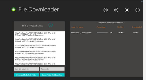 用户可以点击集成在 HTML 页面 上的按钮,然后选择目的文件夹,最后开始下载。在下载期间,用户还可以控制要下载的文件列表,观察下载进程的进度,甚至跳过特定文件。完成下载后,用户可以查看日志文件。