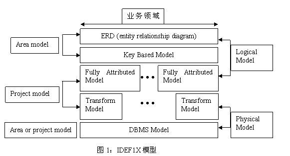 ERwin支持 IDEF1X和 IE两种建模方法,两种方法都适用于大规模企业级数据库建模。本文将采用 IDEF1X进行建模,它是由美国空军开发出来的一种建模方法,被广泛应用于政府机构的各种项目里,是在实践中逐渐成熟起来的一种建模方法。从需求规范开始,随着对项目了解的深入, IDEF1X用一系列逐步细化的模型来进行建模,直至生成最终物理数据库,如图 1所示: