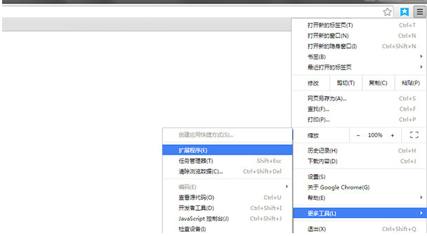 2.点击右侧菜单栏,选择更多工具 - 扩展程序