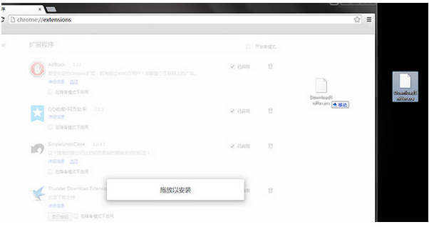 3.把下载插件XiaoBaiDownloadSniffer.crx拖拽到扩展程序页面。选择“添加”。