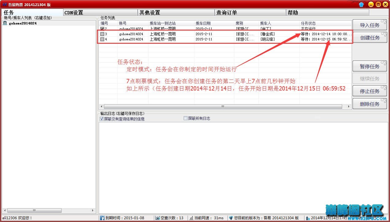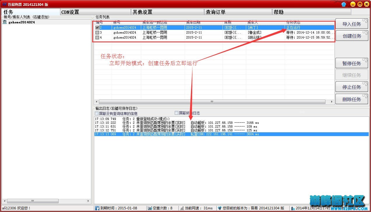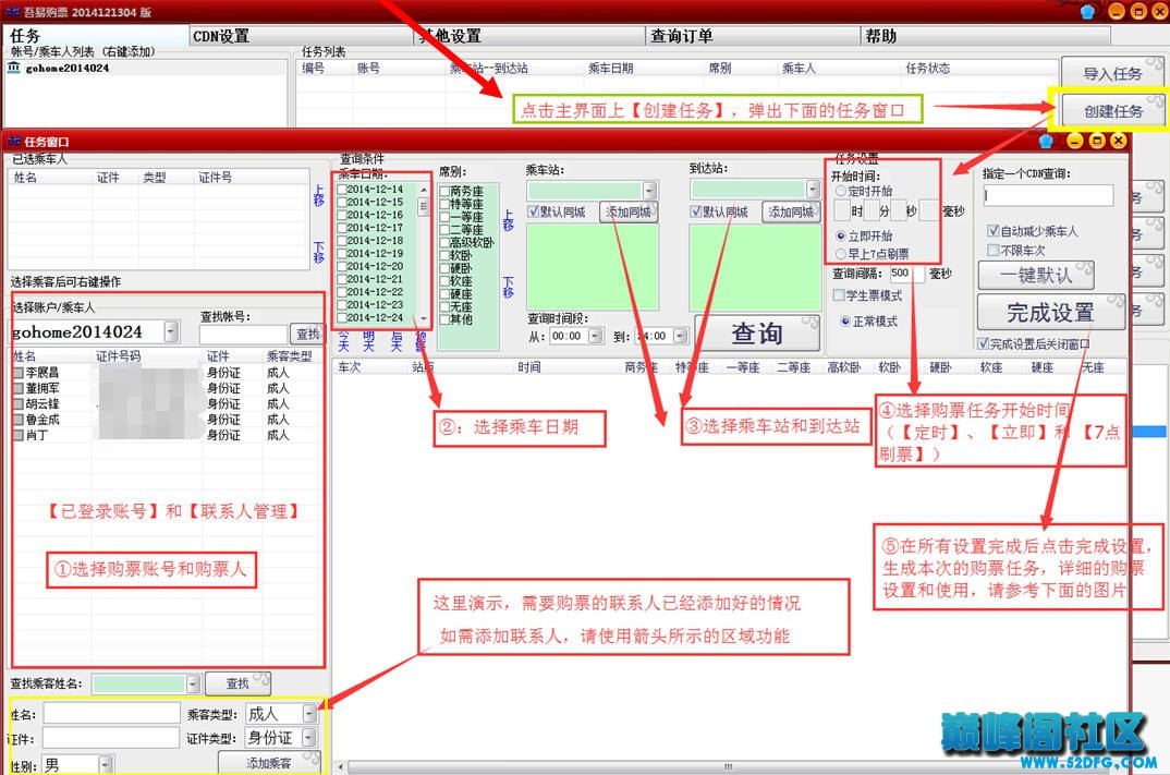第三步:添加购票任务(参照下图的设置顺序①⇒⑤)