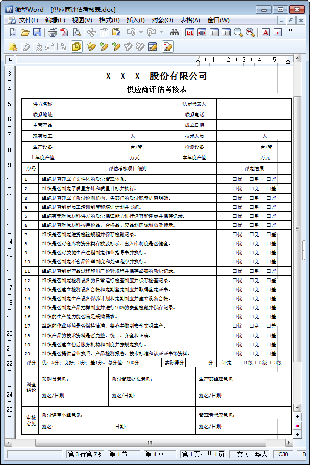 供应商评估考核表图样