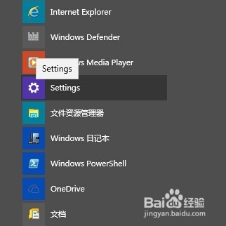 单击win10开始菜单,选择settings菜单,话说还有主么多菜单是英文的,正式版赶得及汉化么。