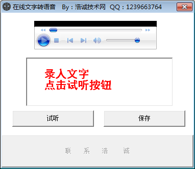 软件操作简单,直接录入文字,点击【试听】按钮即可,如果觉得可以就【保存】