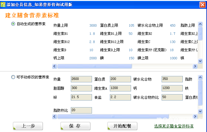 二 、自主选择食谱: 用户可从食谱库中任意选取食谱。系统自动对食谱进行营养分析、评价。以上配餐方式均可自定义三餐热比。常用食谱可存放在收藏夹,随时调阅使用。