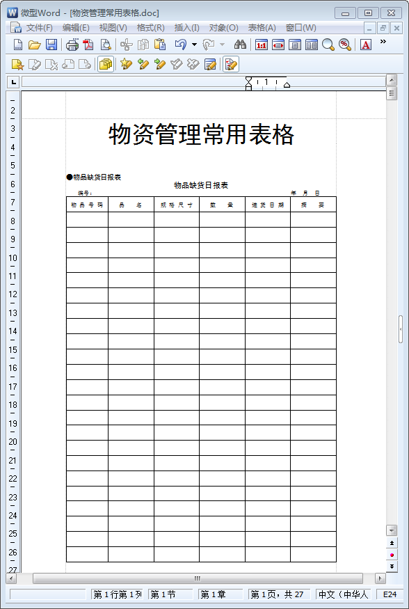 什么是物资管理?物资管理指的是企业在生产过程中对本企业所需物资做好物资计划、采购、库存管理,它能在保证企业生产活动顺利开展的同时,降低产品成本,并加速资金周转。本节内容东坡小编为大家整理带来的是一份doc格式word版物资管理常用表格模板,供物资管理人员进行使用,有需要的朋友点击本文相应的下载地址进行下载即可!