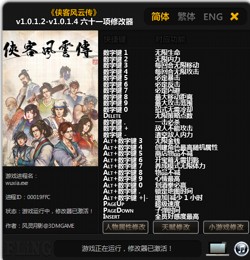 侠客风云传六十一项修改器特别说明
